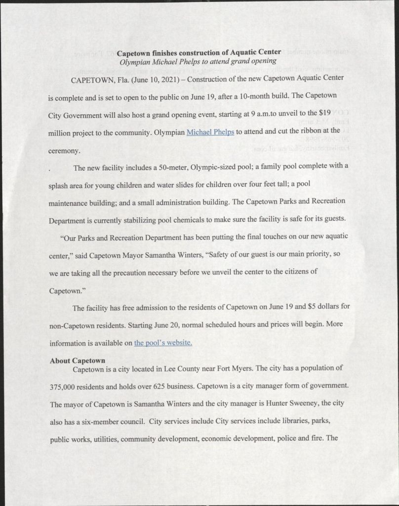 - Letter to the Editor was published in The News-Press; a daily broadsheet newspaper serving parts of Lee, Collier, Hendry and Charlotte Counties